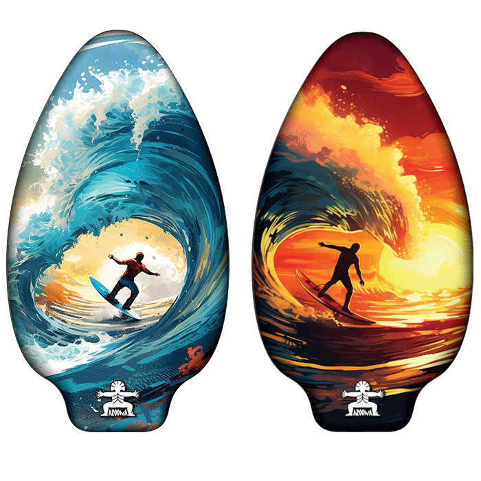 Let op! Een skimboard bestaat uit verschillende lagen hout die onder druk samengeperst zijn. De coating rondom het skimboard zorgt er voor dat het waterdicht is en er geen water bij het hout kan komen. Echter wanneer er scheurtjes ontstaan in de coating, is het board niet meer waterdicht en zal het hout uitzetten. Ga dus altijd zorgvuldig om met je board. Zet deze niet op de stenen neer.