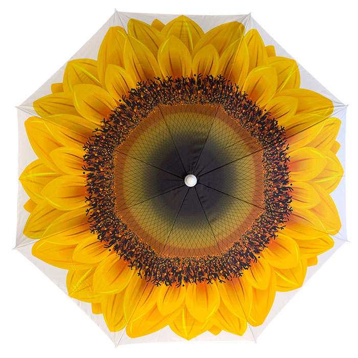 Breng een zonnige sfeer naar elke zomerse dag met de Strandparasol Sunflower 180 cm! Deze opvallende parasol heeft een prachtig zonnebloemdesign, wat niet alleen zorgt voor schaduw, maar ook voor een vrolijke uitstraling. Met een diameter van 180 cm biedt de parasol een ruime schaduwplek, perfect voor op het strand, aan het zwembad of op de camping. Het unieke ontwerp maakt deze parasol een echte blikvanger waar je ook bent.